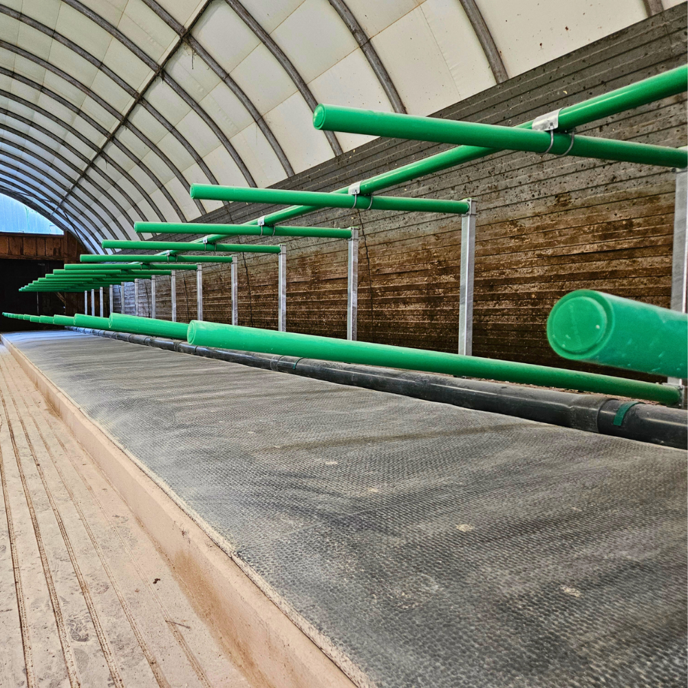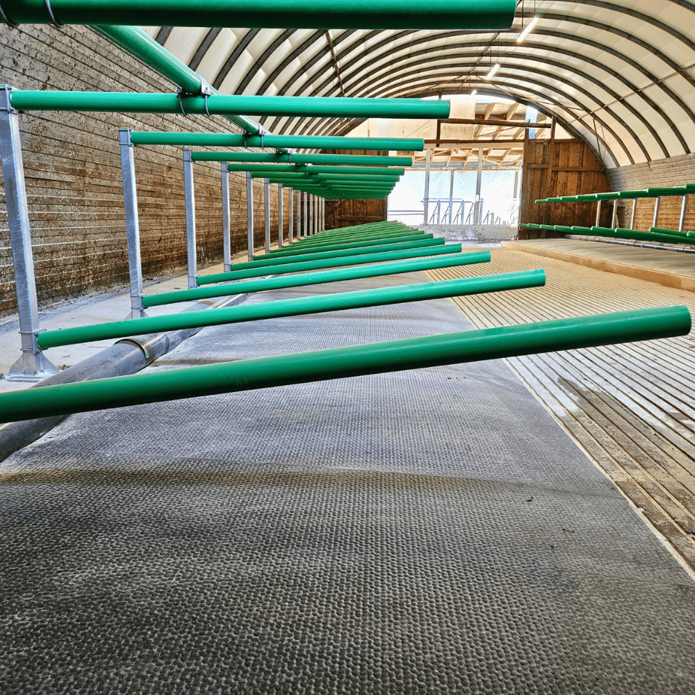 Apakšējais putu slānis efektīvi slāpē triecienus punktveida slodzēs un neuzsūc mitrumu. Centrālais slānis ar jauno viļņveida profilu piešķir virsmai īpašu elastību un nodrošina augsta līmeņa ērtības guļošai govij. Augšējais pārklājums ar iestrādātām blīvējošām malām un netīrumu aizsargbarjerām pilnībā aptver putu pamatni, aizsargājot to no netīrumiem un mitruma.