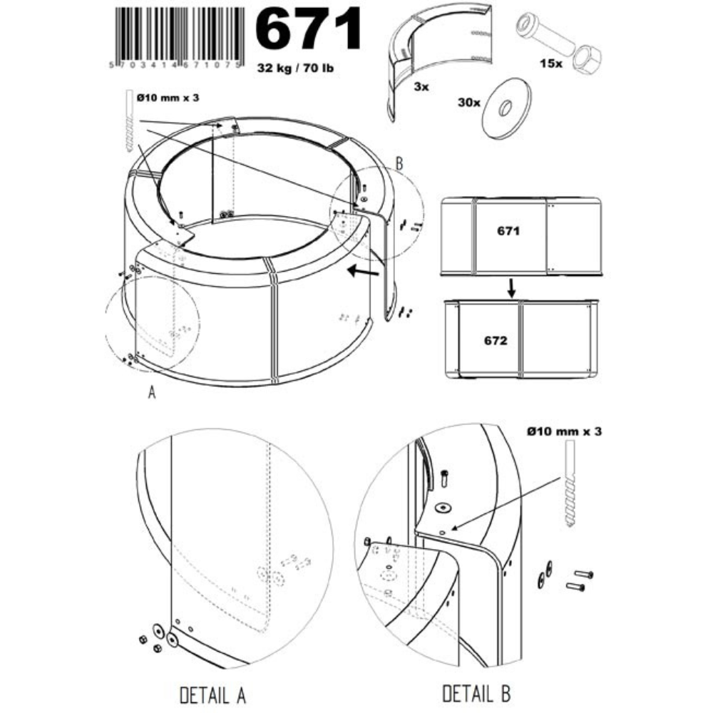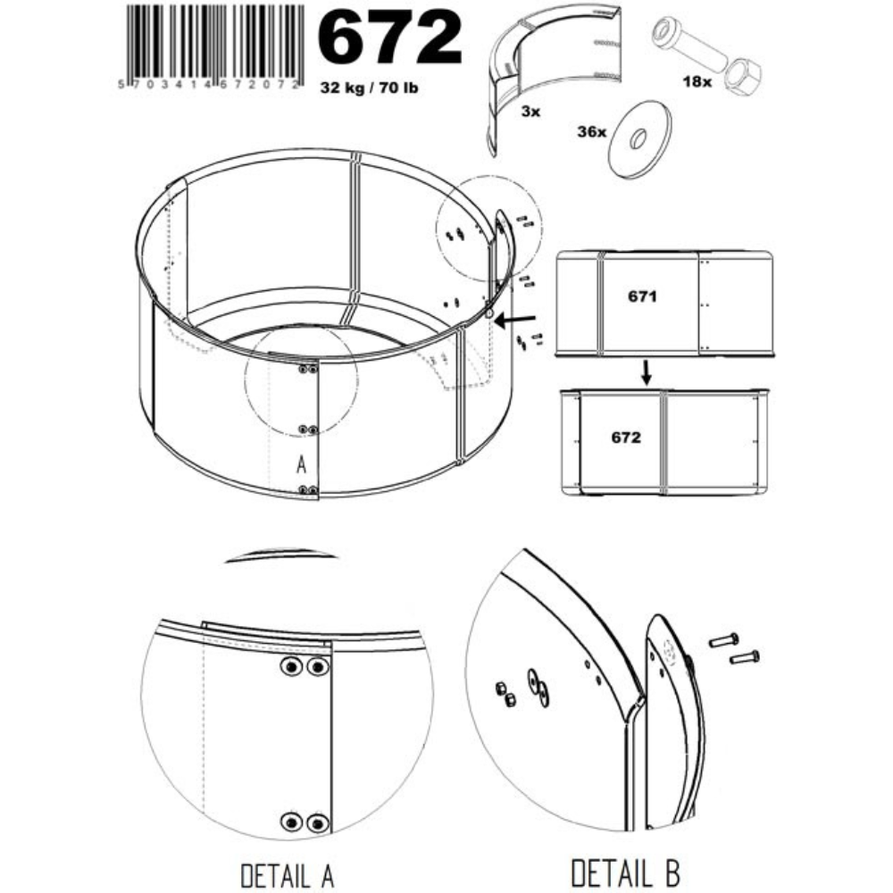 Barotava sastāv no iekšējā gredzena un ārējā gredzena. Barotavas diametrs ir 140 cm un tajā var ievietot ķīpas ar diametru līdz 130 cm. Kopējais svars ir 65 kg.