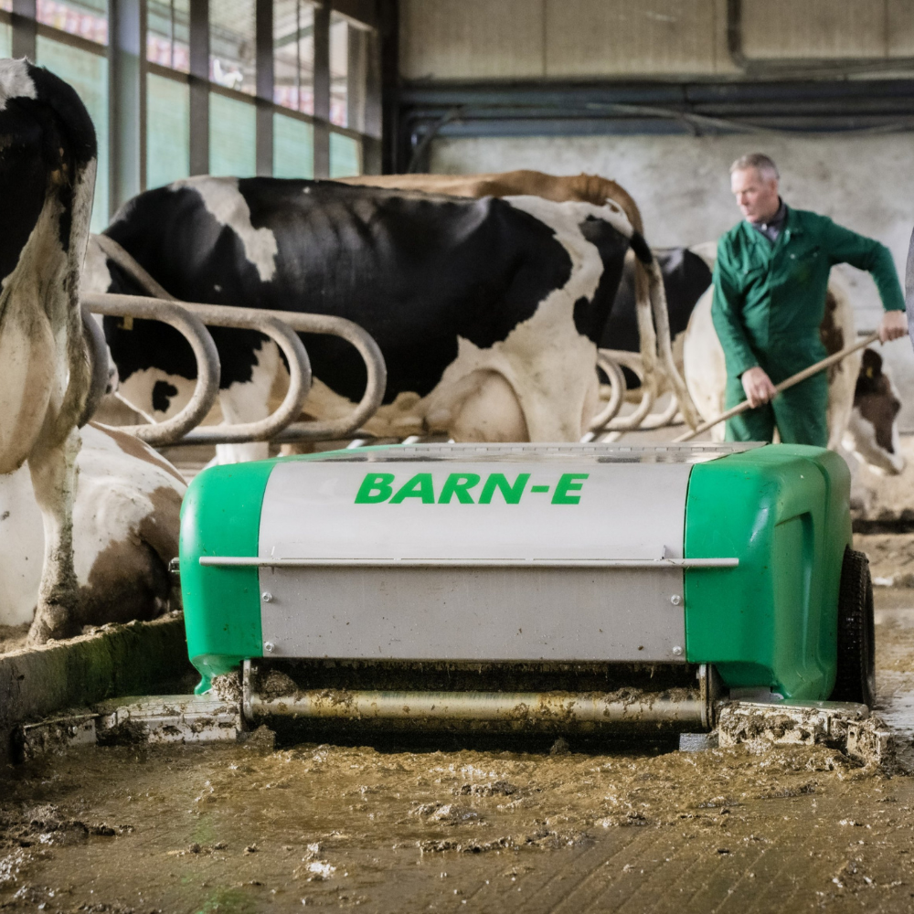 Šis revolucionārais kūtsmēslu robots ir piemērots gandrīz visām kūtīm ar slēgtām, vienlaidu grīdām. Barn-E PRO viegli tiek galā arī ar uzgaidāmajām zonām un platām mēslu ejām. Atšķirībā no tradicionālajām skrēperu sistēmām tas nevis stumj kūtsmēslus virzienā uz šķērskanālu, bet gan savāc tos tvertnē.