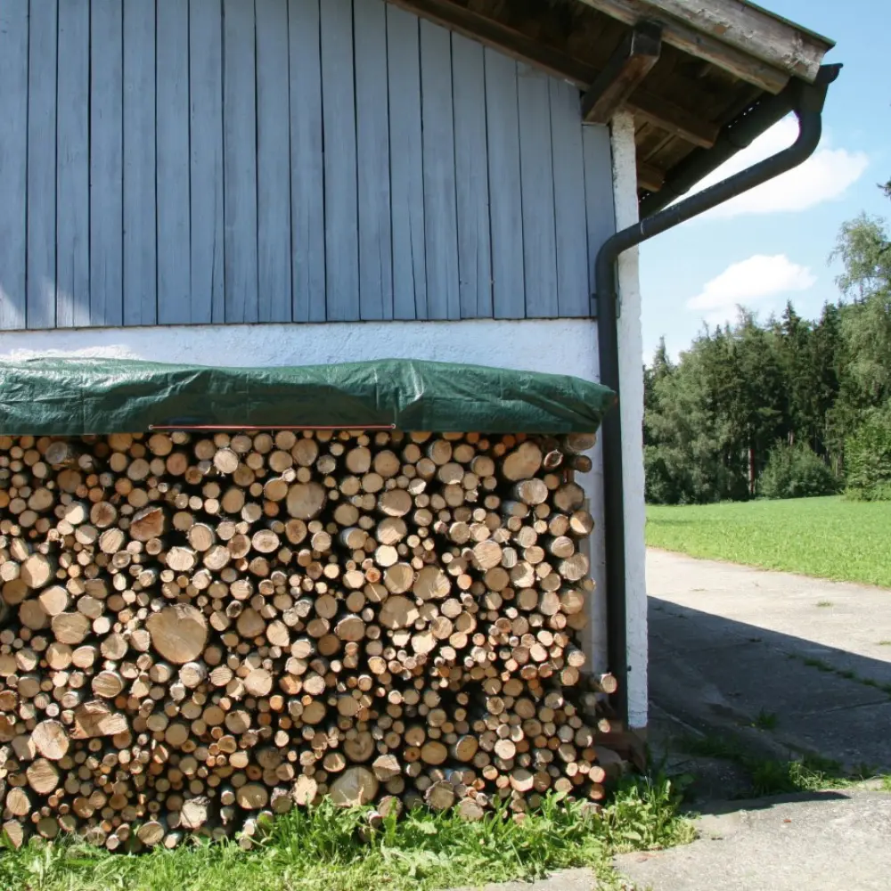 Mēs iesakām 210 g/m² brezentu malkas grēdu pārklāšanai!