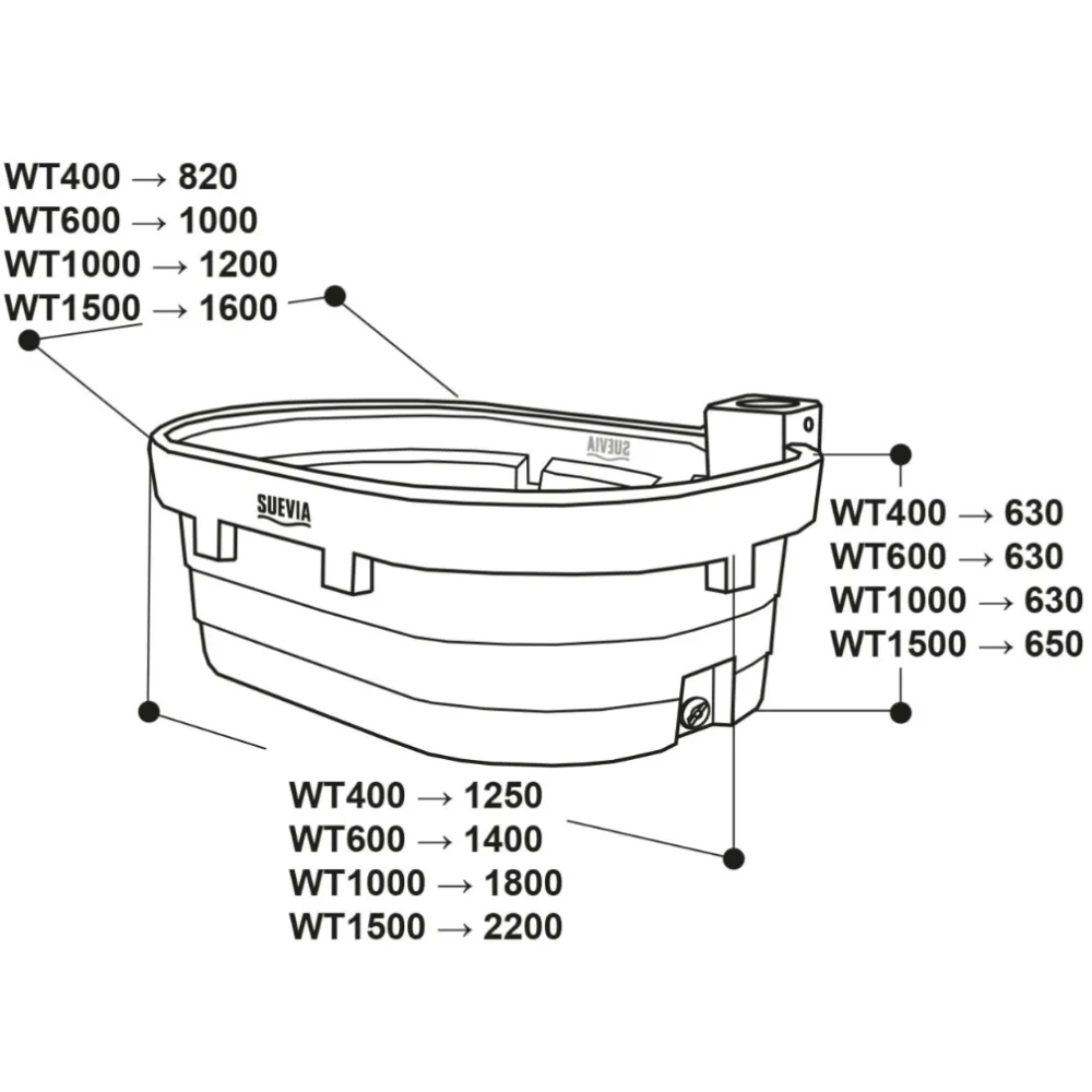 - Dzirdni ir iespējams aprīkot ar pludiņa vārstu automātiskai ūdens uzpildei (vārsts nav iekļauti komplektācijā)