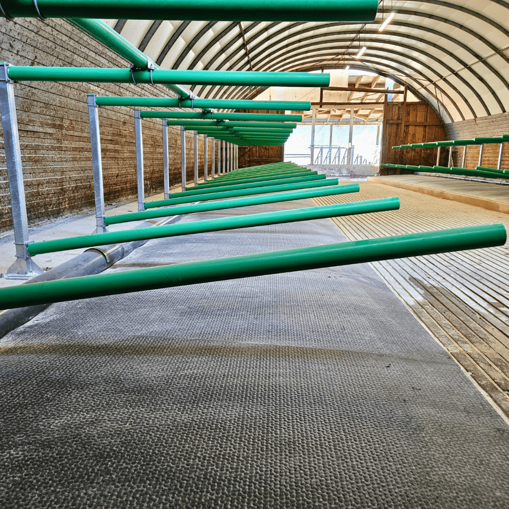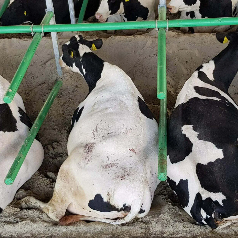 Apakšējā polimēra caurule pielāgojas govs ķermenim, nodrošinot ērtu un pareizu guļas pozu. Ja govs mēģina gulēt šķībi, caurules elastība un biezums to maigi virza pareizajā stāvoklī.