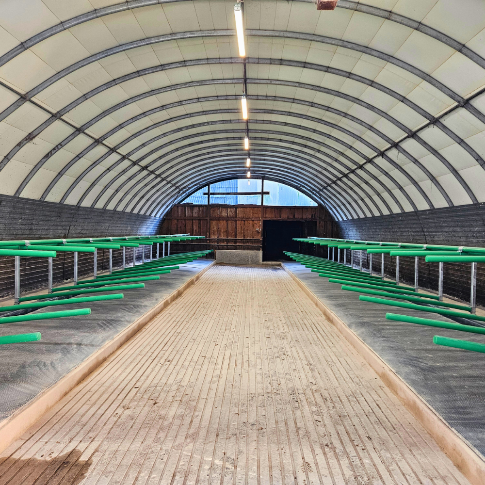Guļvietas priekšpuse ar plašu atvērumu nodrošina brīvu galvas kustību, ļaujot govij dabiski apgulties un piecelties.