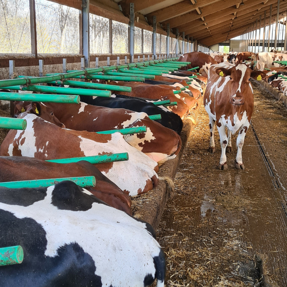 Cow-Welfare Flex Stall ir viegli uzstādāma un pielāgojama sistēma. Tās unikālais dizains ir piemērots gan teļiem, gan pieaugušām govīm — nepieciešamības gadījumā polimēra caurules un skausta stieni var ērti noregulēt atbilstoši dzīvnieku izmēram.