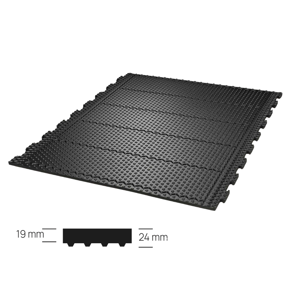 Paklājs ir neslīdošs, viegli tīrāms un dezinficējams. Izgatavošanas solis – 2 cm, kas ļauj precīzi pielāgot izmērus konkrētām vajadzībām. Piemērots gan jaunbūvēm, gan rekonstruētām telpām, ar nosacījumu, ka pamatnes nelīdzenumi nepārsniedz 1 cm.