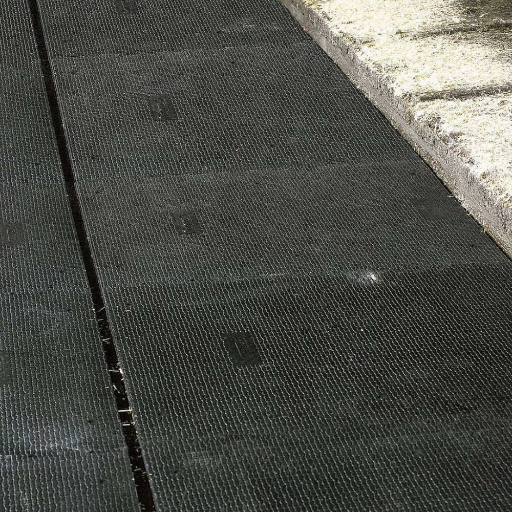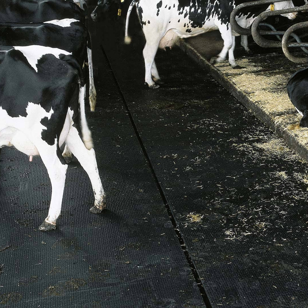 KURA P – stabils un izturīgs pastaigu laukumu paklājs, kas nodrošina lielisku pārvietošanās komfortu liellopiem.