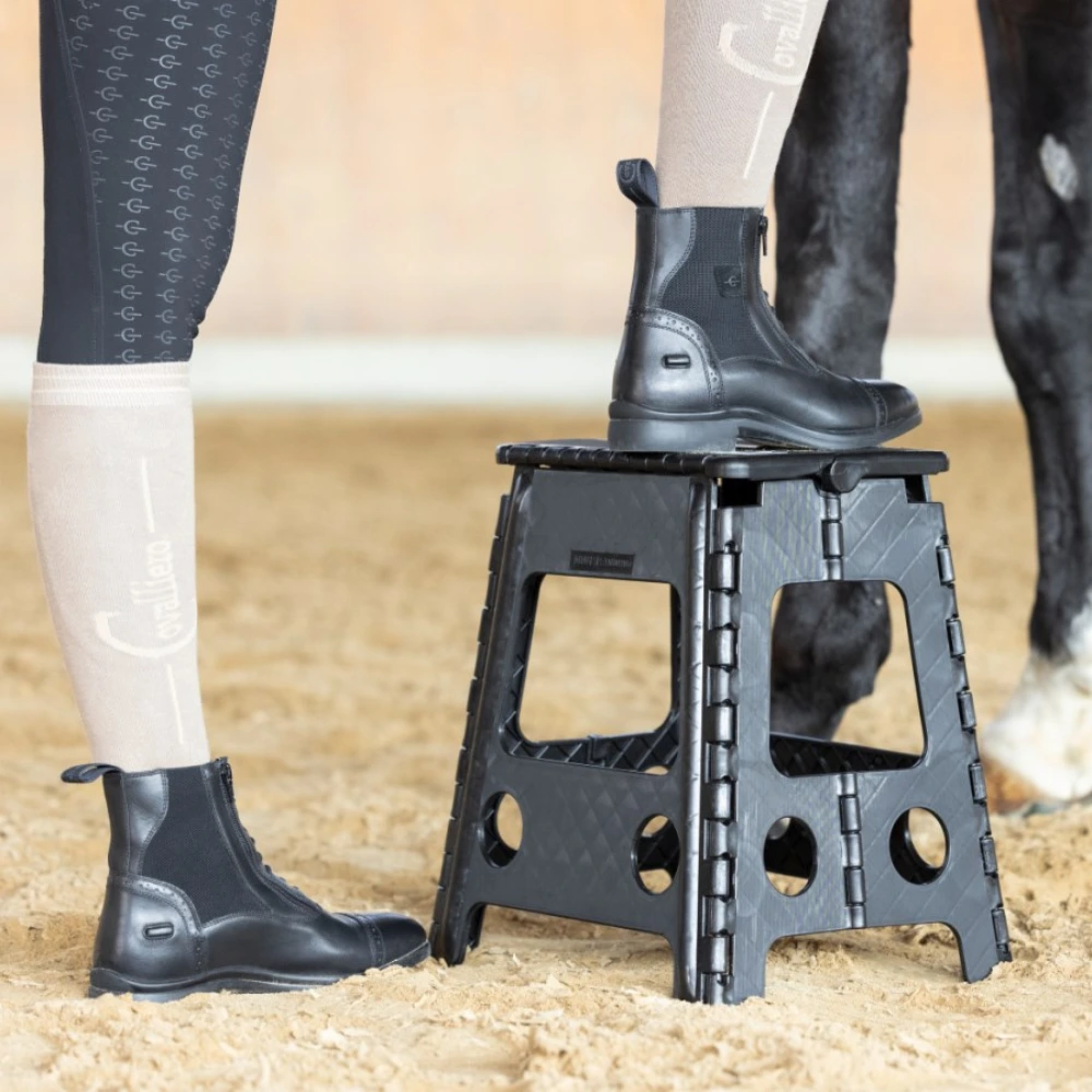 Sportiska elegance: Moderni jāšanas puszābaki sievietēm ar šņorzābaku izskatu no Covalliero ir izgatavoti no mīkstas, gludas ādas un nodrošina sportisku, elegantu izskatu stallī un izjādēs.