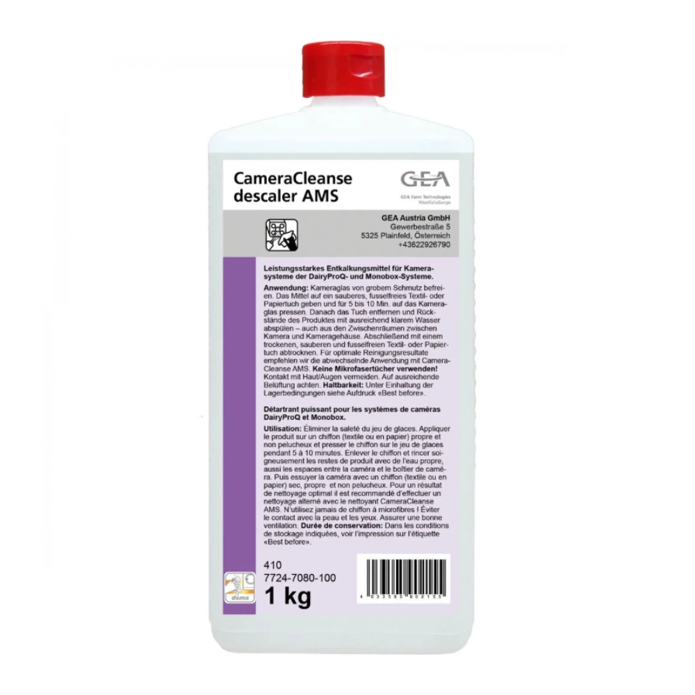Spēcīgs atkaļķošanas līdzeklis uz fosforskābes bāzes DairyProQ un Monobox slaukšanas sistēmu kamerām. Noņem kaļķakmens nogulsnes no kameras objektīva un korpusa.