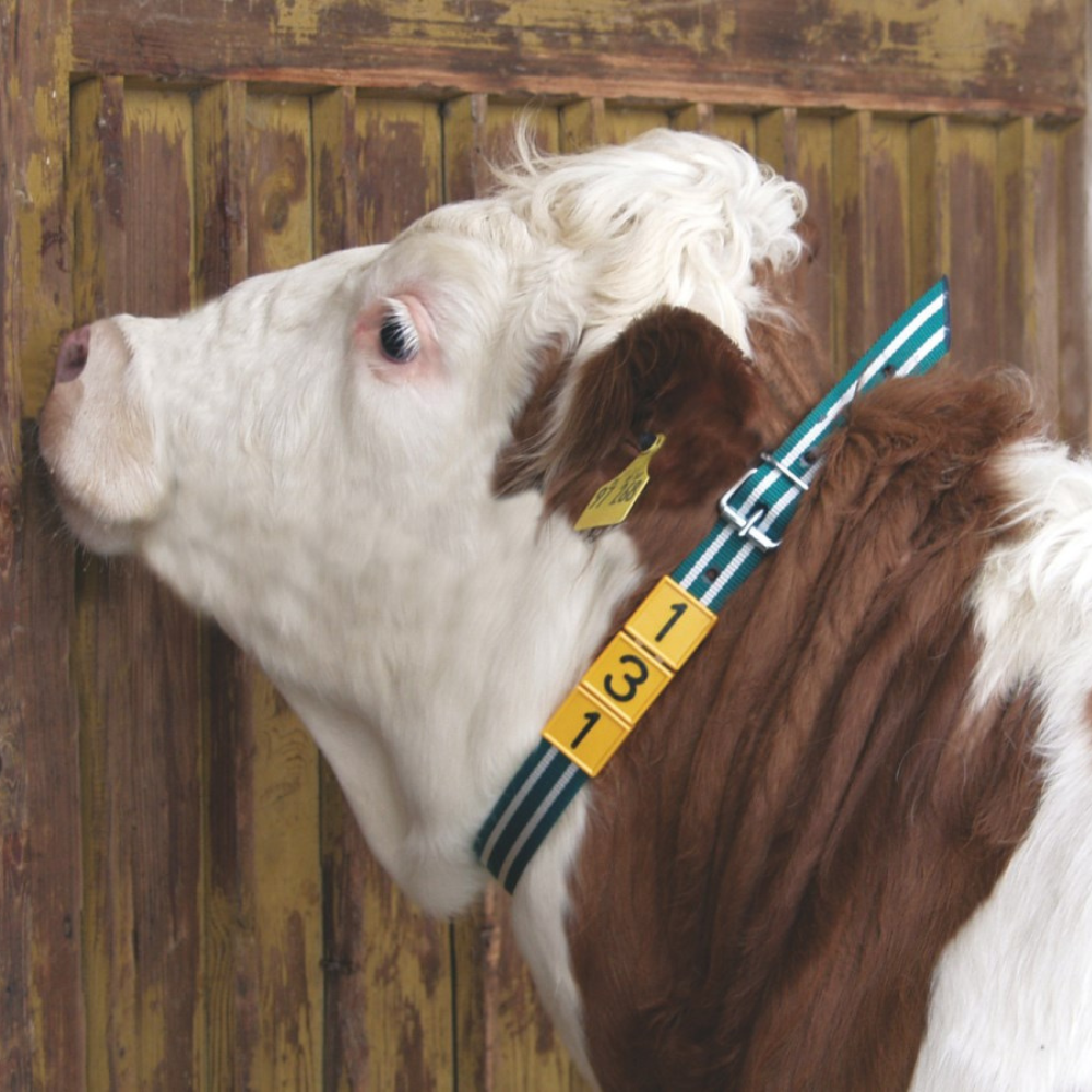 • Augstas kvalitātes kakla marķēšanas siksna liellopiem ar rullīšu sprādzi
