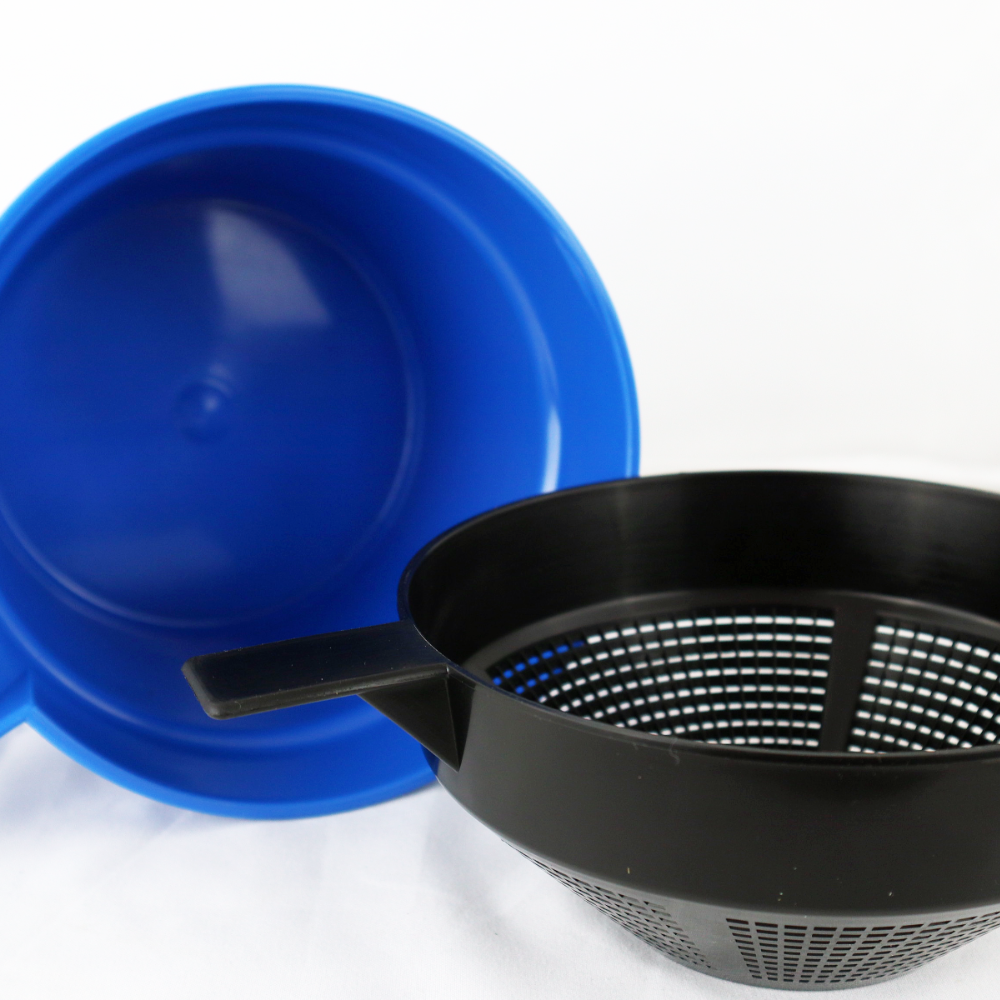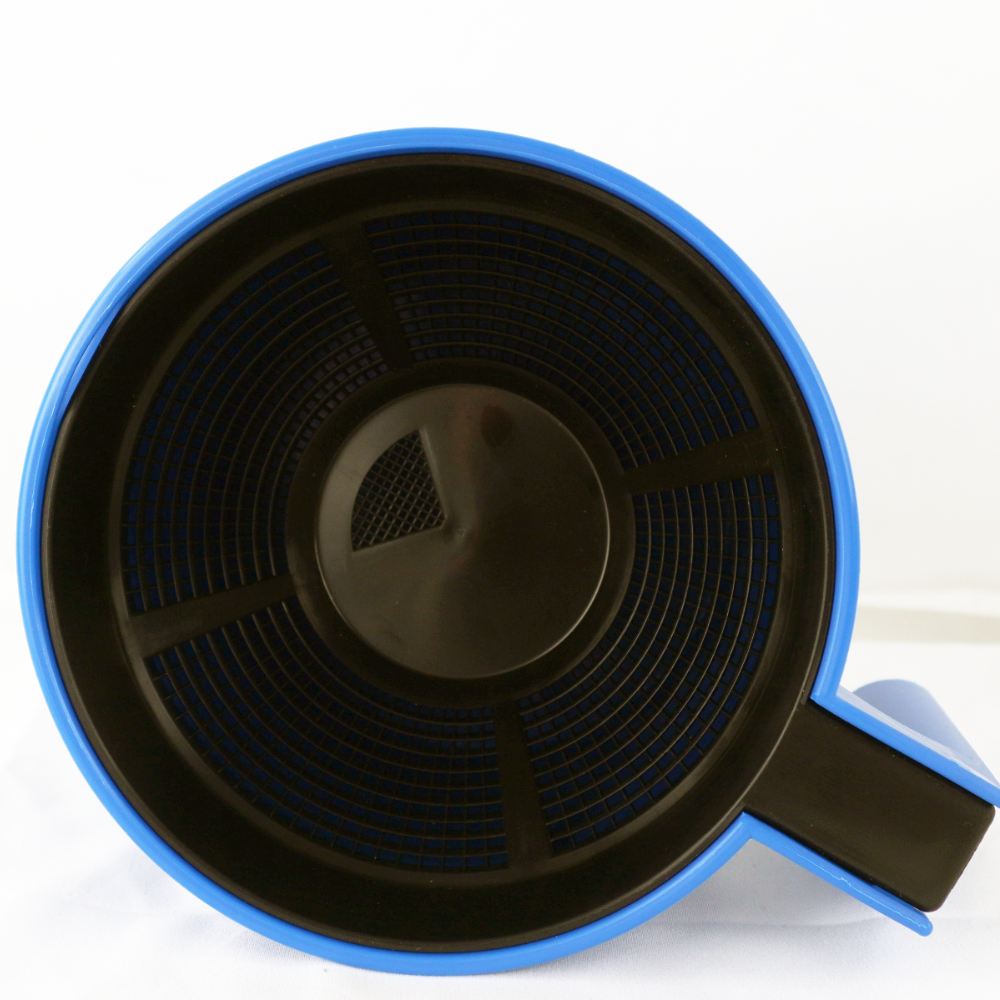 Piena atslaukšanas krūze AMBIC ar sieta ieliktni - katra pupa pirmo piena strūklu pārbaudei. Izmantojot piena atslaukšanas krūzi, piens nenonāk uz nagiem, kas pozitīvi ietekmē nagu veselību.