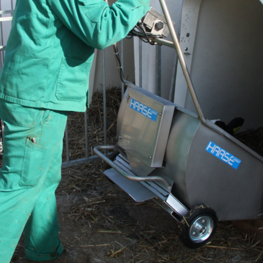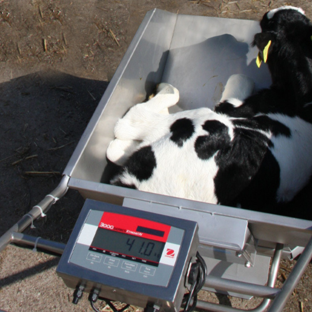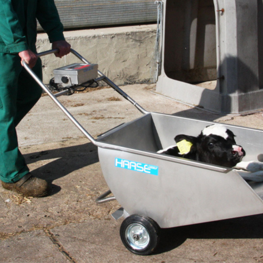• Teļu transportēšanas rati ar iebūvētiem svariem jaundzimušu teļu svēršanai
