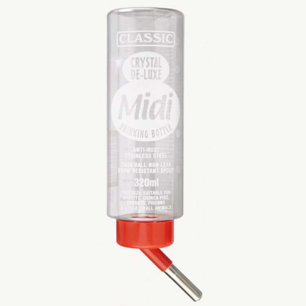 Classic de Luxe pudele ir aprīkota ar divu lodīšu tehnoloģiju, kas nodrošina efektīvu un drošu ūdens padevi. Dzirdinātājam ir stiprinājuma stieple, kas ļauj to viegli un droši piestiprināt pie būra. Caurspīdīgā krāsa atvieglo ūdens līmeņa uzraudzību.