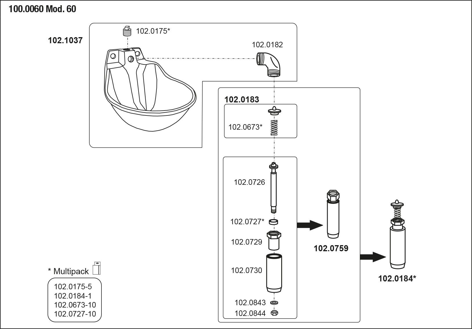 Vārsts komplektā ar sprauslu 2,3 mm. Vārsts ir saderīgs ar Suevia dzirdnēm IDEAL un Model 60.